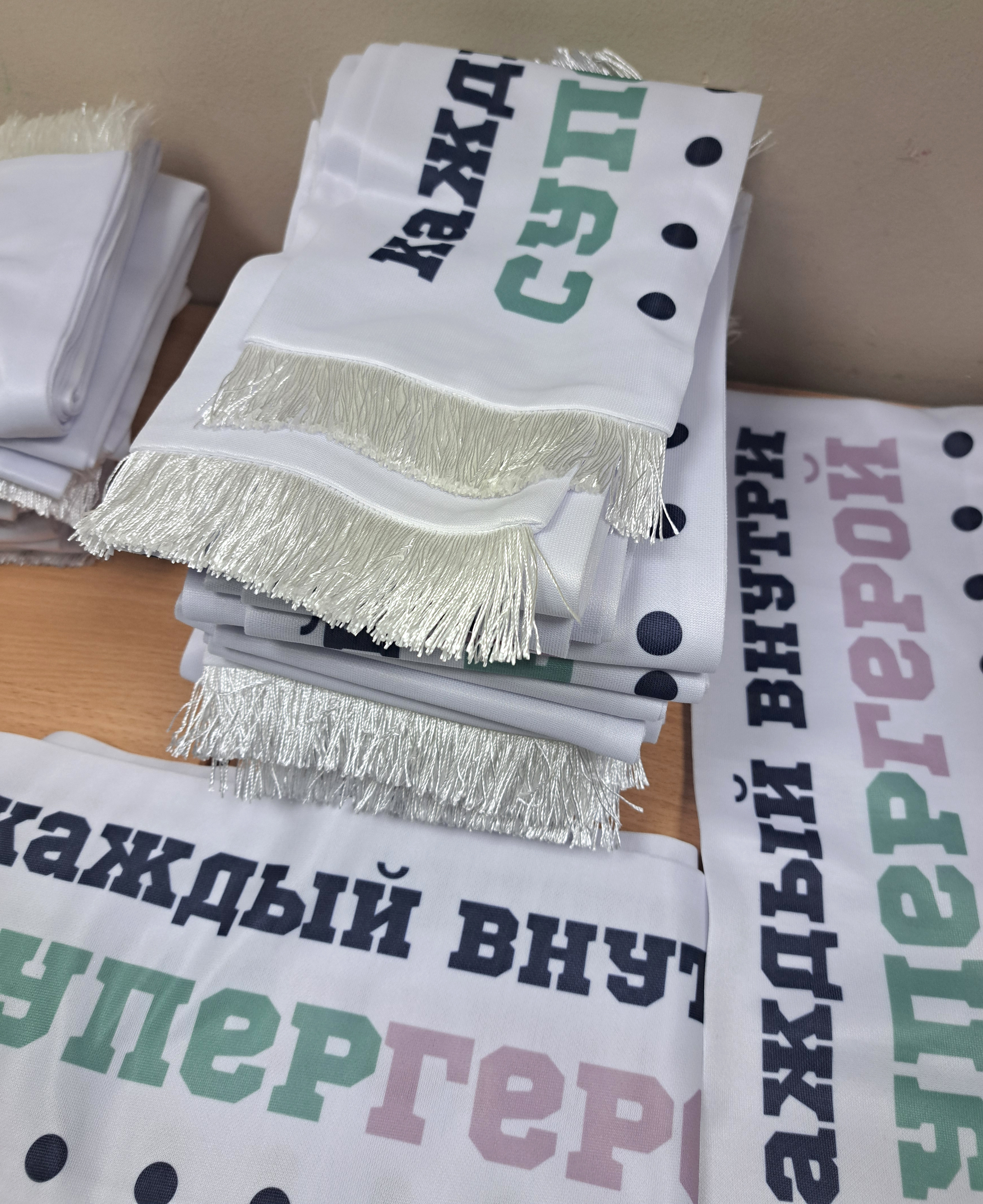 Нанесение логотипа, текста на шарфы и шапки: